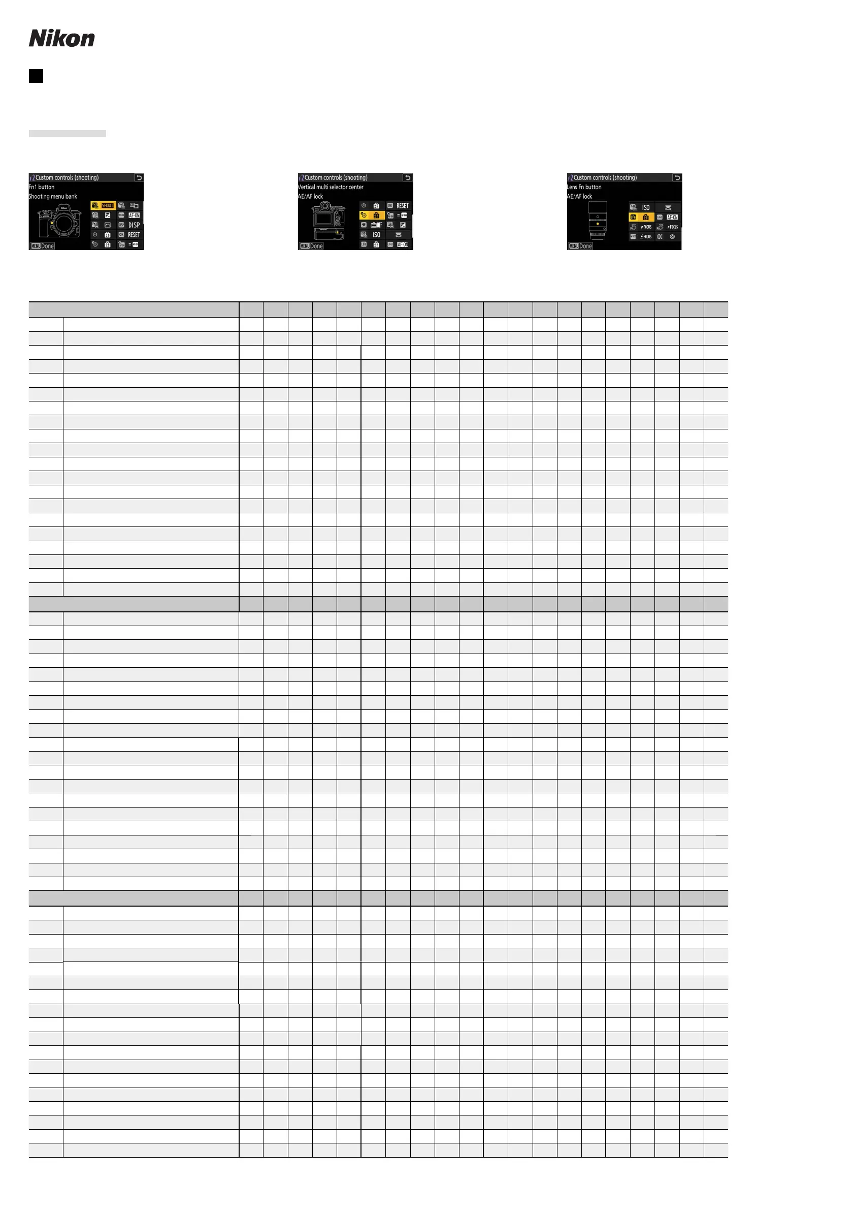 The roles played by custom controls during still photography are chosen using Custom Setting f2 [Custom controls (shooting)].