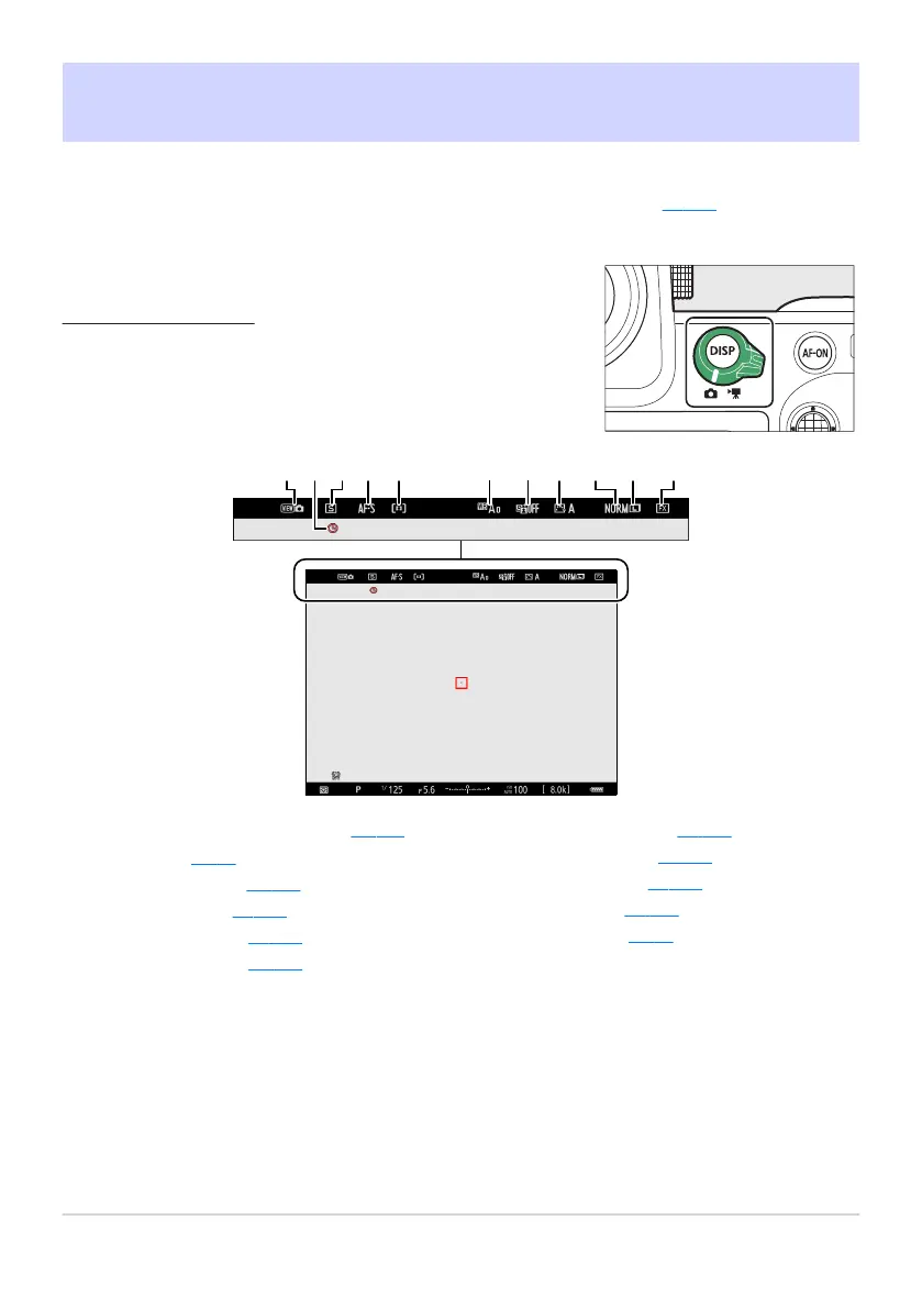 may be displayed, see “The Viewfinder” in the section on “Camera Displays” (