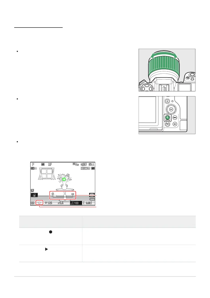 Manual focus is available in manual focus mode. Use manual focus when, for example, auto