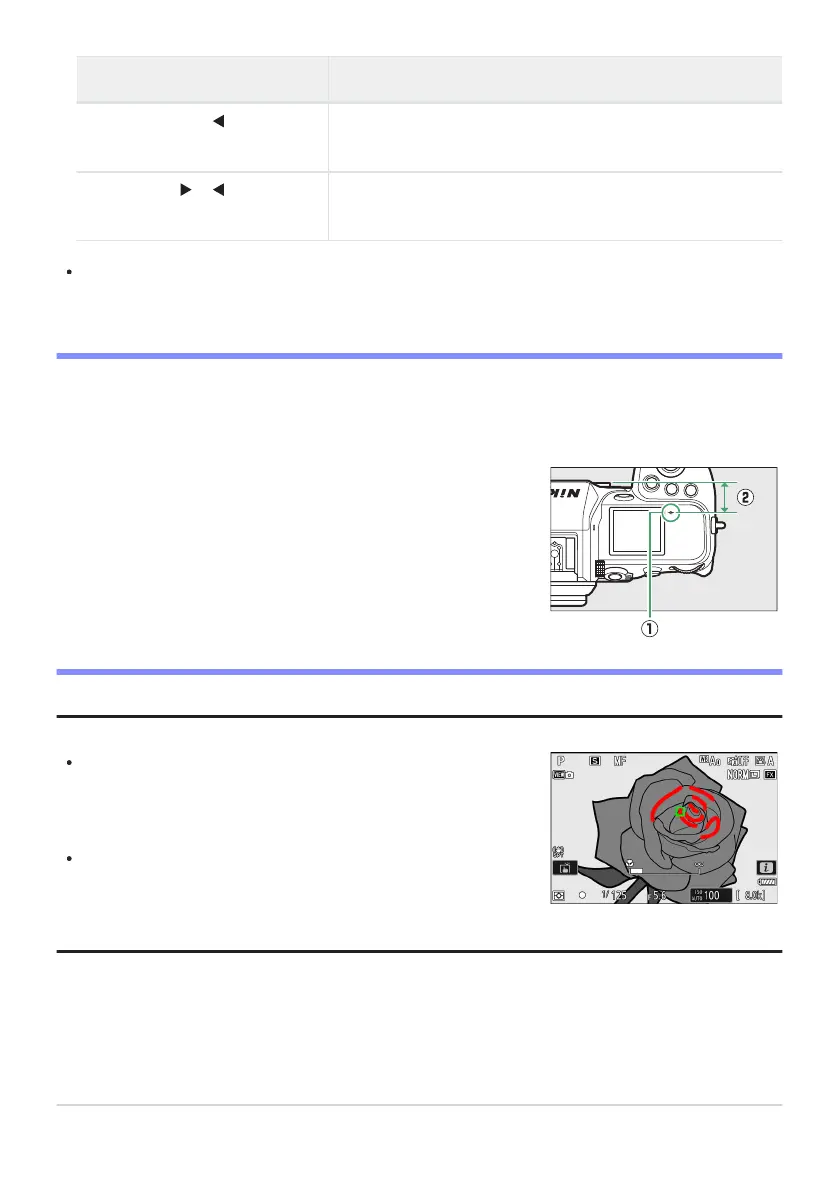 When using manual focus with subjects not suited to autofocus, note that the in-focus indicator (I)
