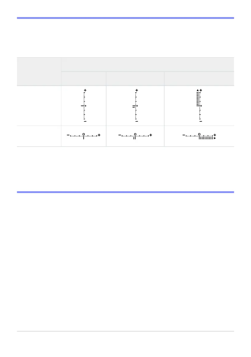 would be under- or over-exposed at current settings. The exposure indicators can be read as follows