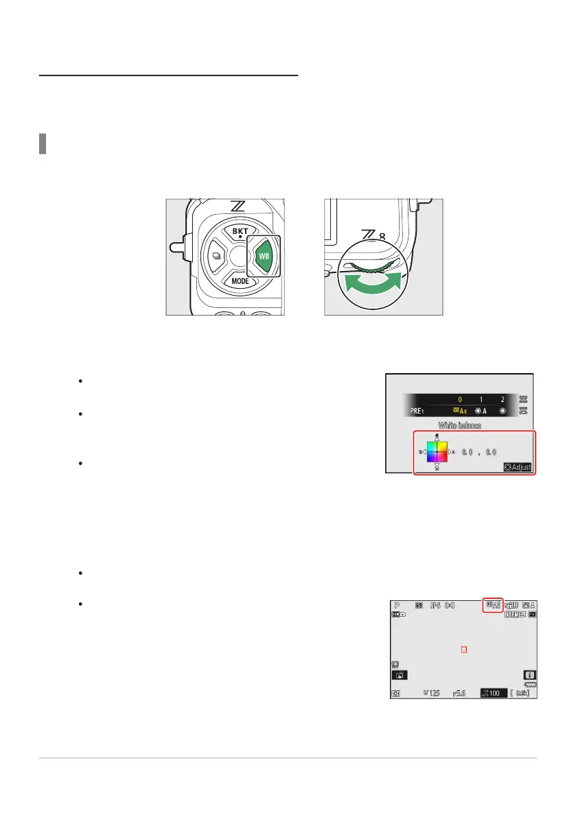 Choose a white balance option by holding the U button and rotating a command dial.