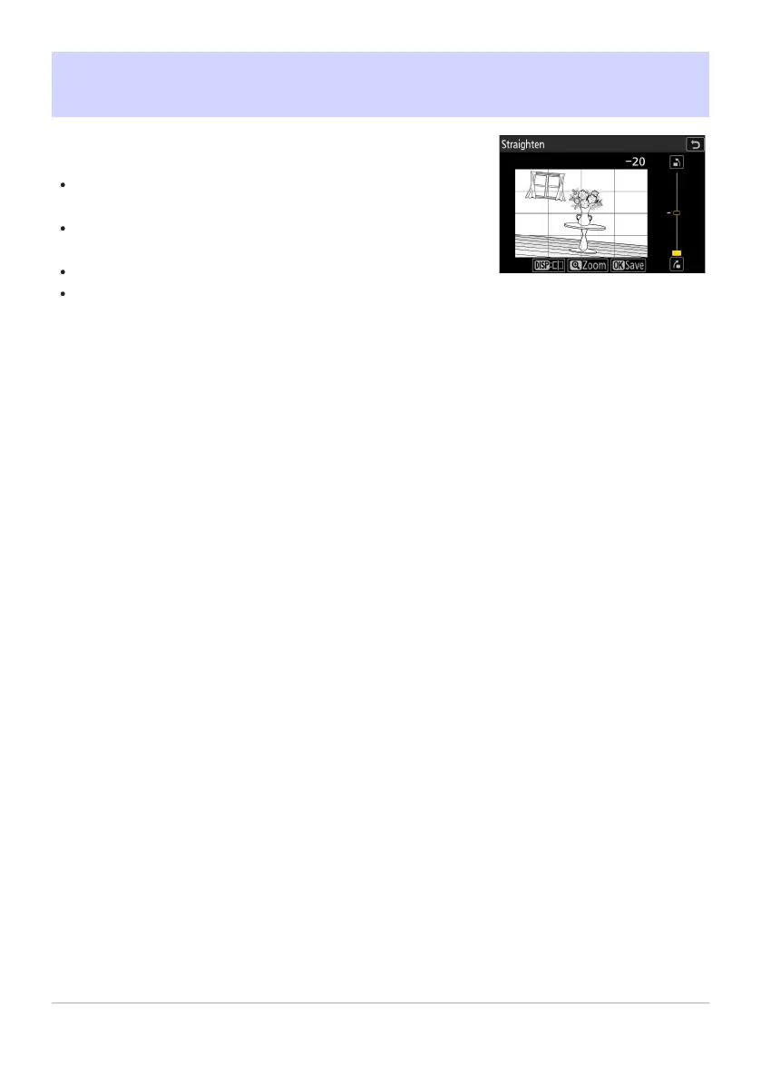 Rotate pictures by up to ±5° in increments of approximately 0.25°.