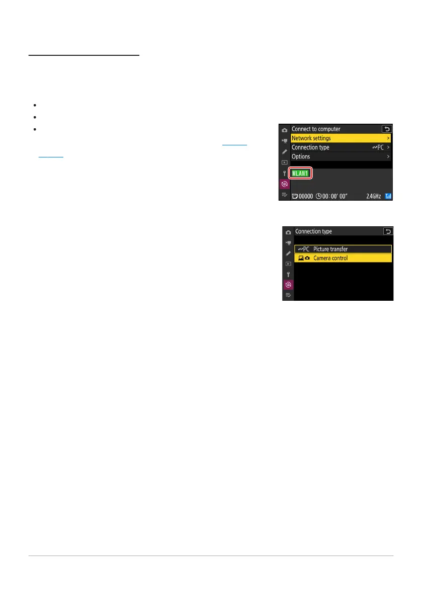 Before using Camera Control Pro 2 or NX Tether, connect the