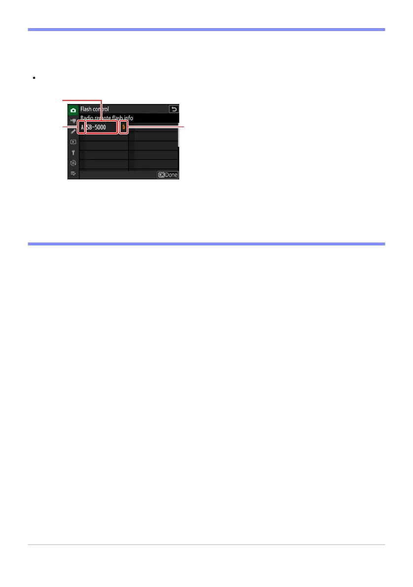 To view the flash units currently controlled using radio AWL, select [Flash control]> [Radio remote