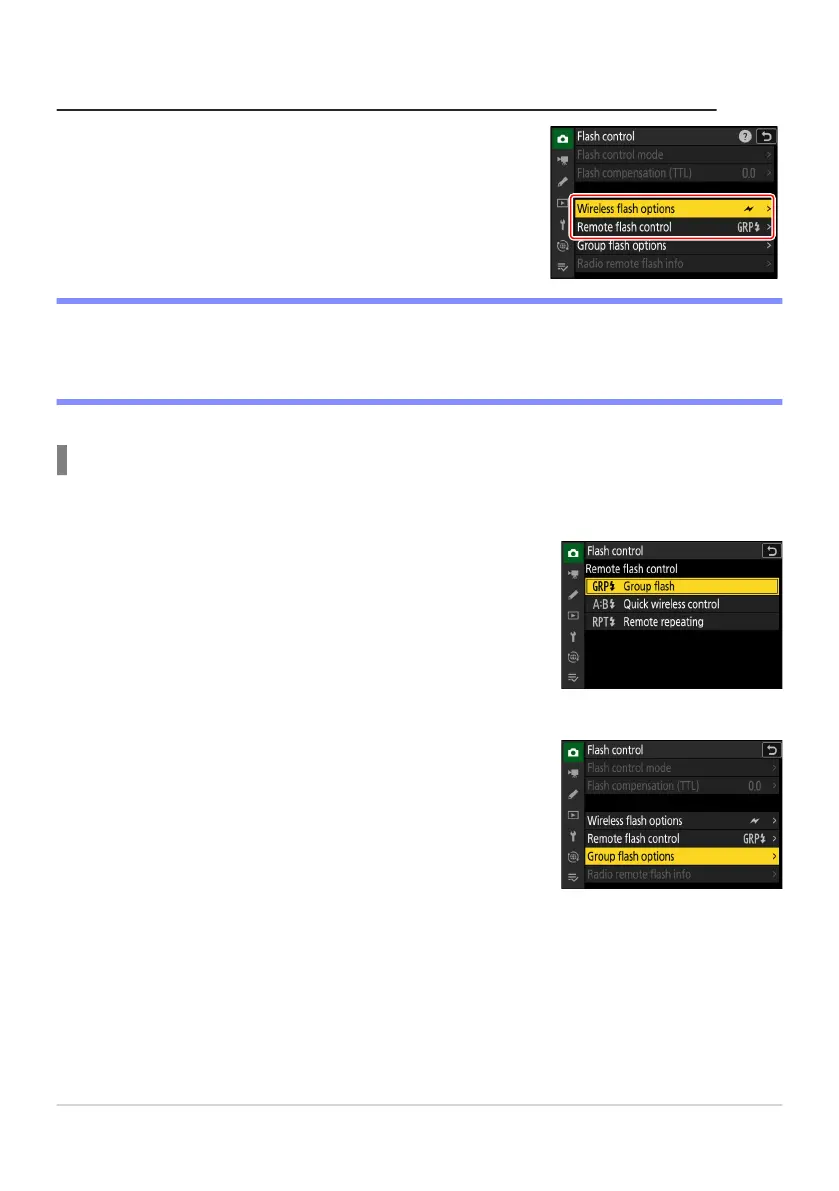 C: Select [Group flash] for [Flash control]> [Remote flash
