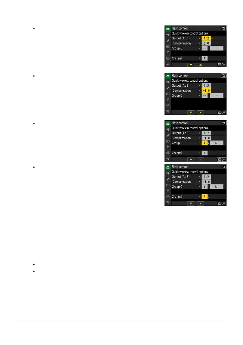 Adjust flash compensation for groups A and B.