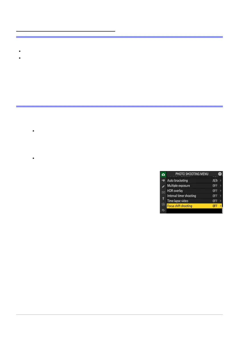 During focus shift, the camera takes a series of shots starting from a selected focus position