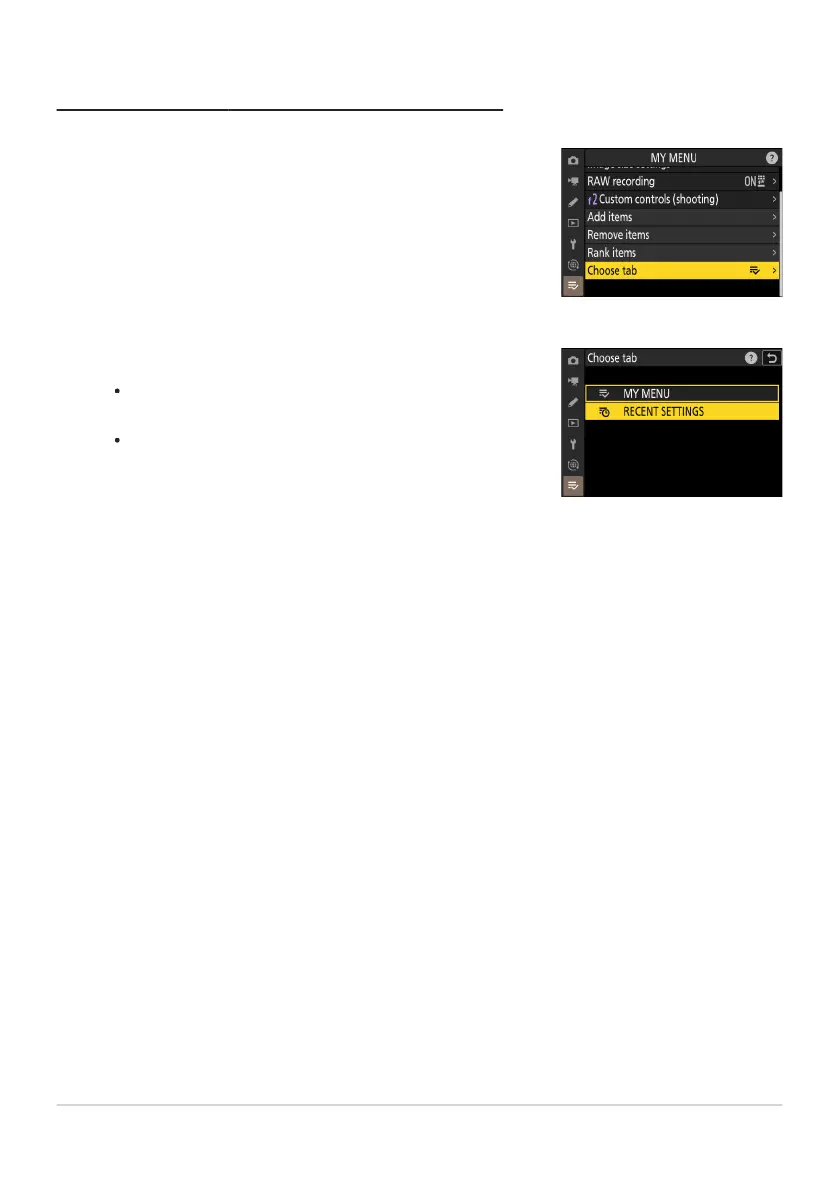 Highlight [mRECENT SETTINGS] in the [Choose tab] menu