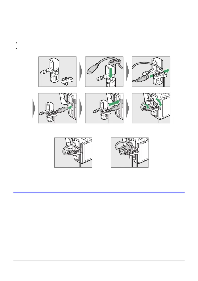 event accidental disconnection, attach the supplied clip to HDMI or USB cables as shown (note