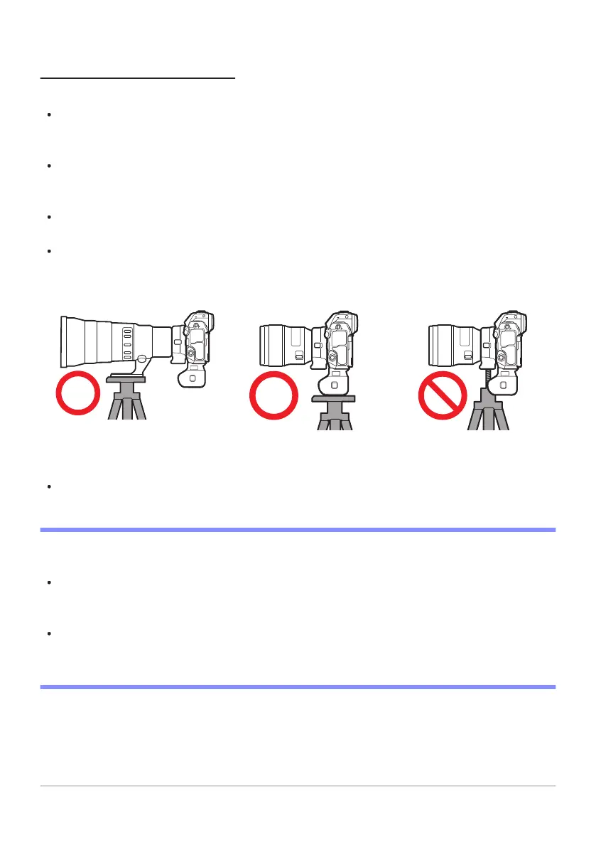 connect tripods to the tripod mount on either the lens or the MB-N12, not to the tripod mount on