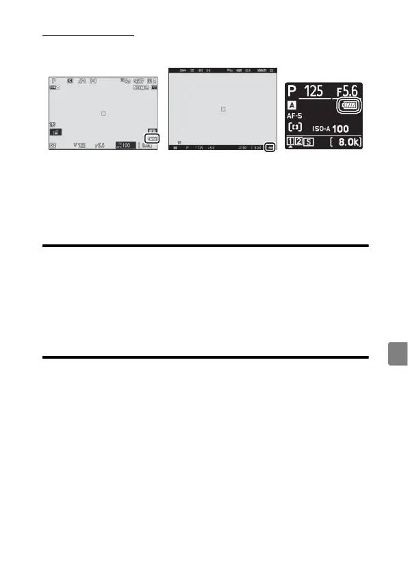 The battery level is shown in the shooting display and control panel