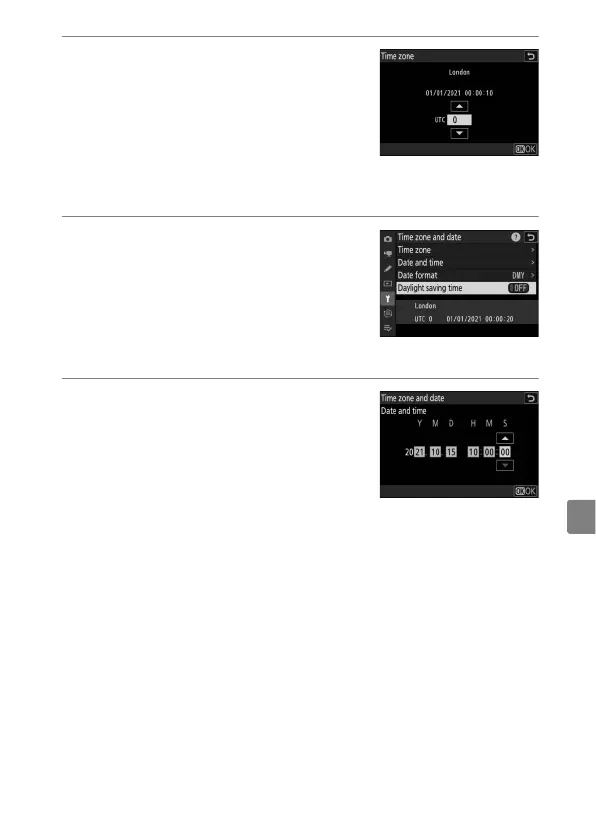 Highlight a time zone in the [Time zone] display and press