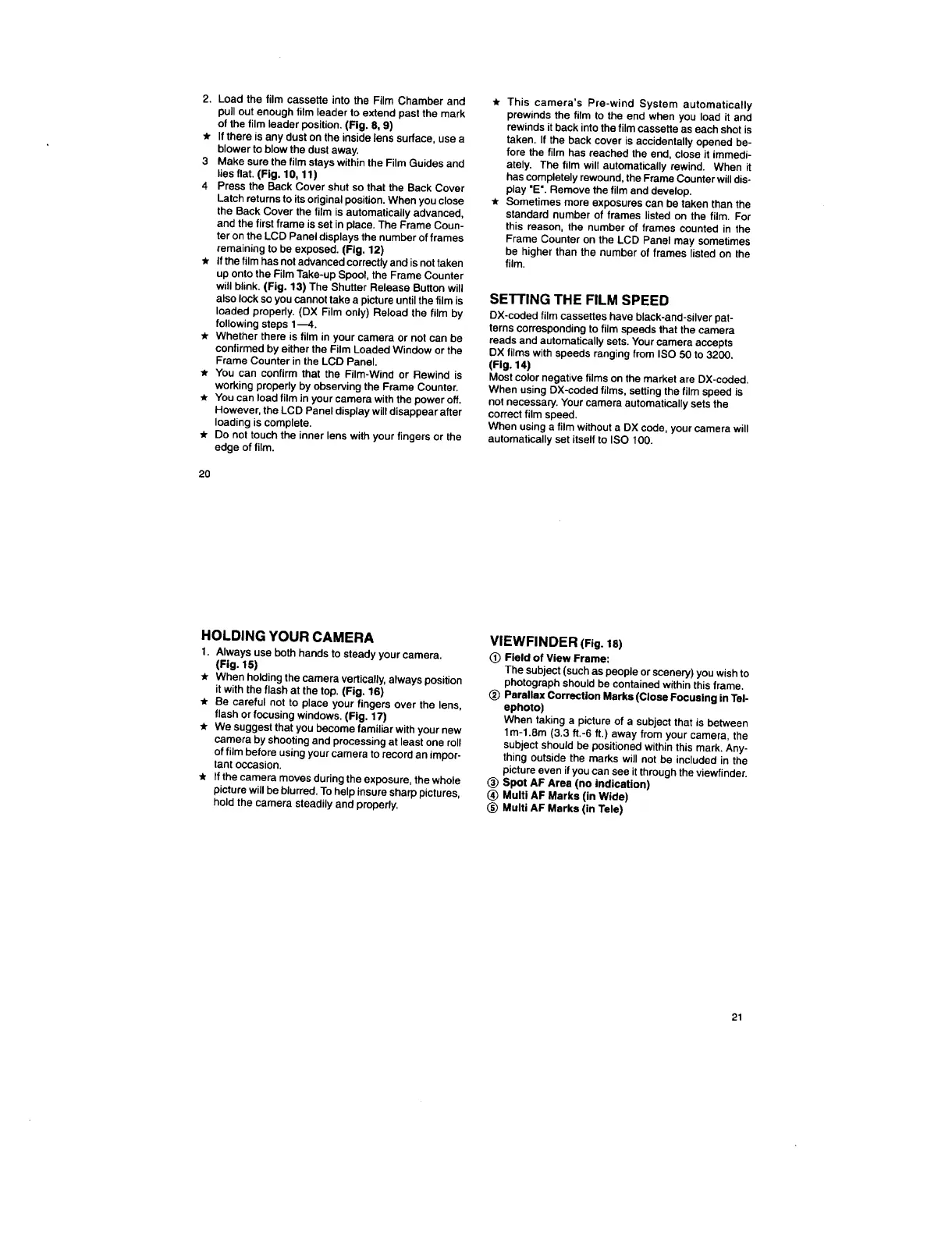 Nikon ZOOM800 - Setting the Film Speed; Holding Your Camera; Viewfinder