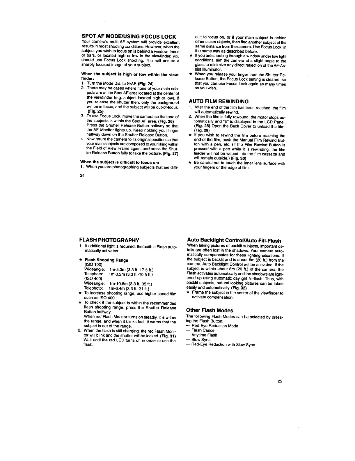 Nikon ZOOM800 - Spot AF Mode;Using Focus Lock; Auto Film Rewinding; Flash Photography; Other Flash Modes