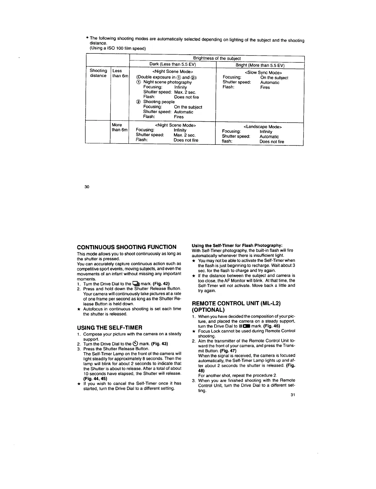 Nikon ZOOM800 - Continuous Shooting Function; Using the Self Timer; Remote Control Unit