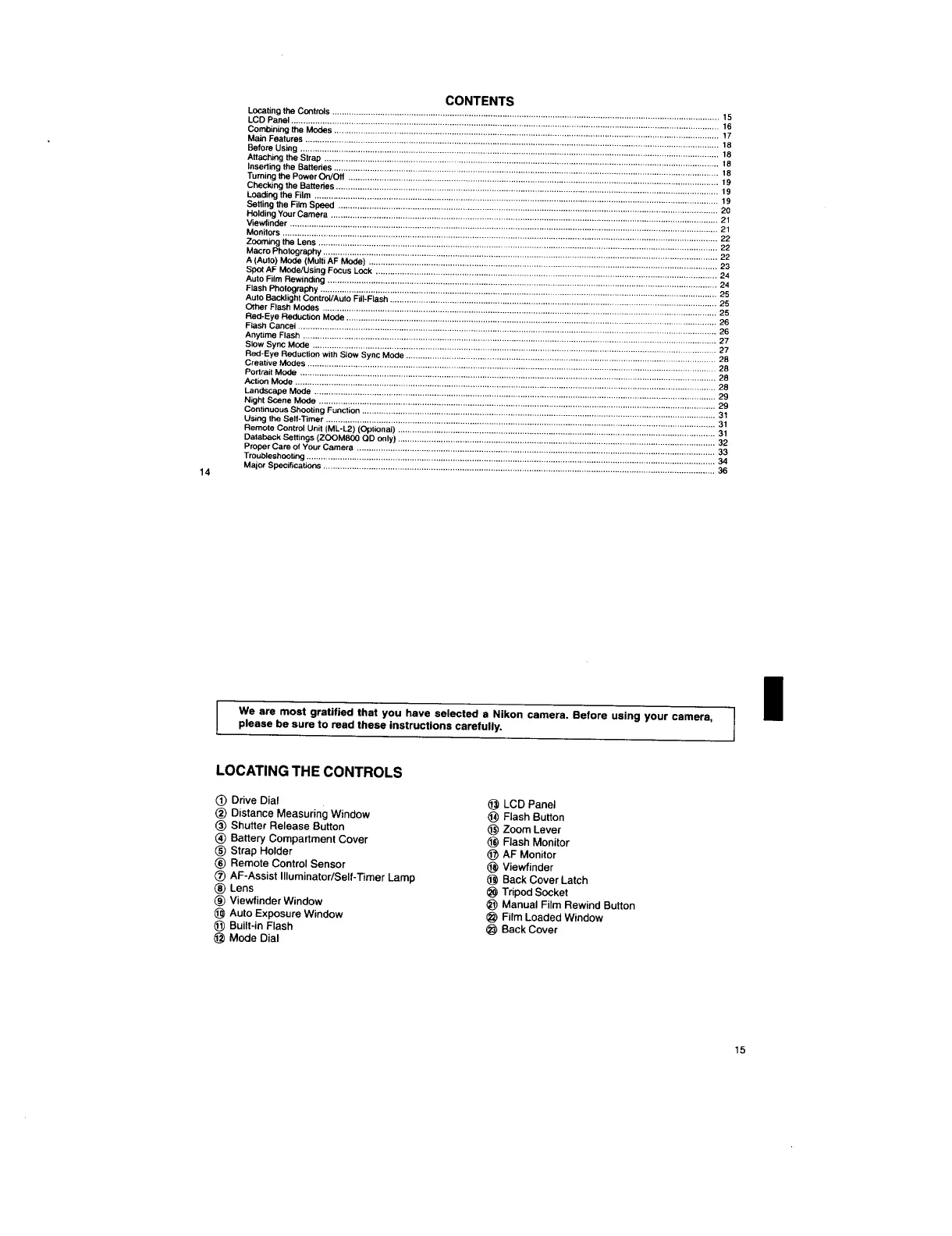 Nikon ZOOM800 - Contents; Locating the Controls