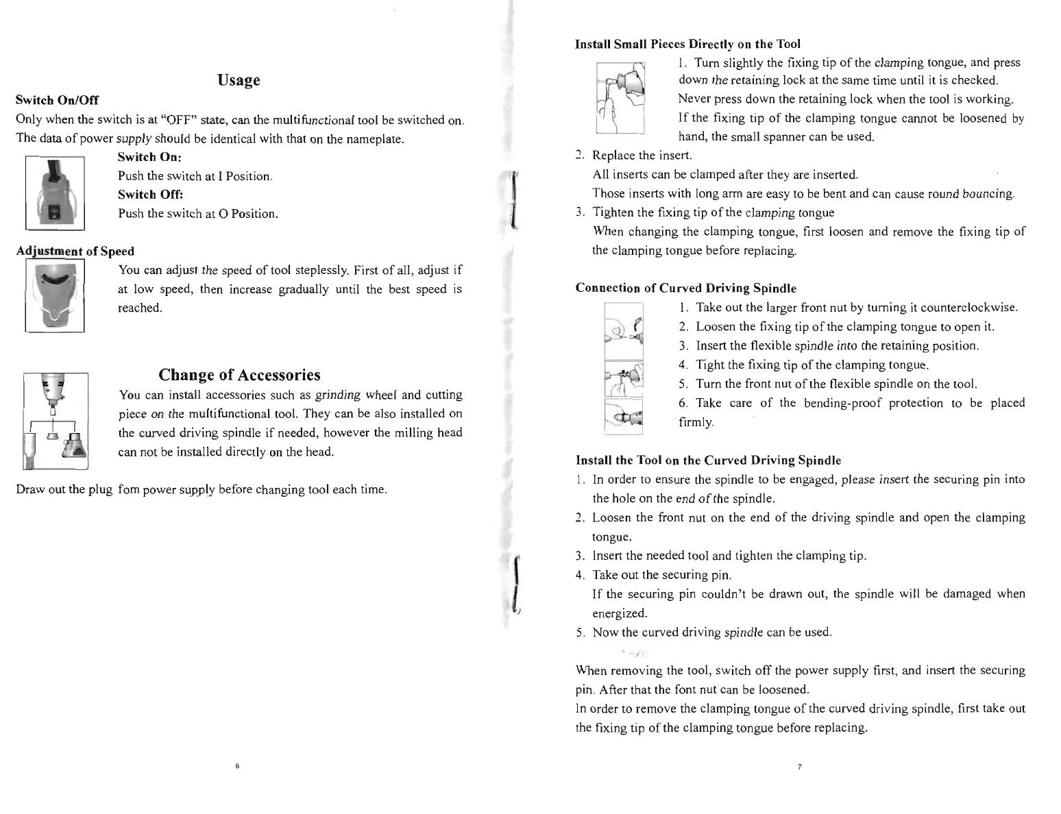 Only when the switch is at "OFF" state, can the multifunctional tool be switched on.