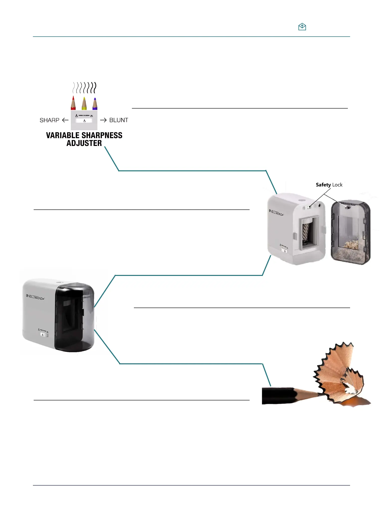 Tip: LED will light up when pencil sharpener is operating. When the pencil achieves