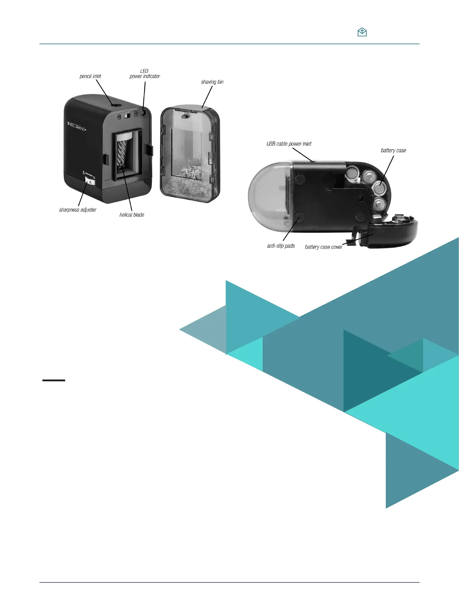 • Empty the shaving bin regularly. The pencil sharpener will not operate