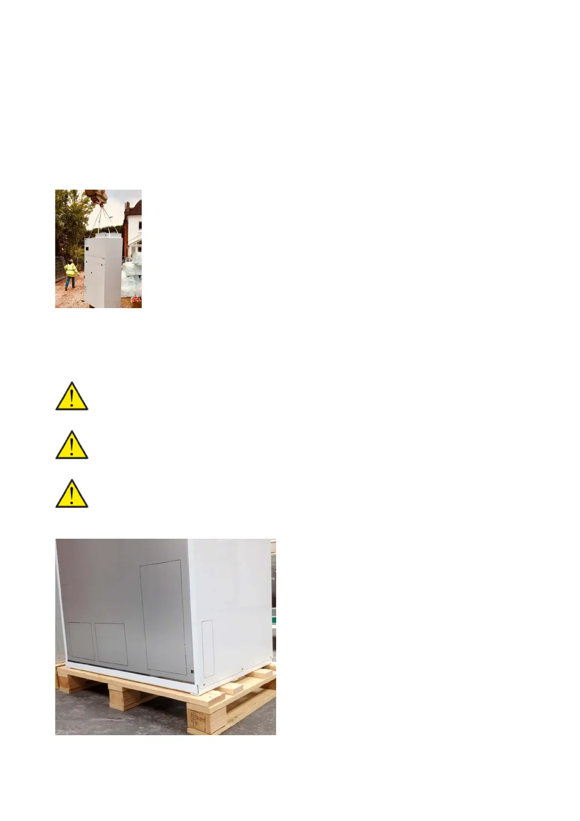 When lifting the units with the supplied straps, these must be at an angle of max. 45°from the