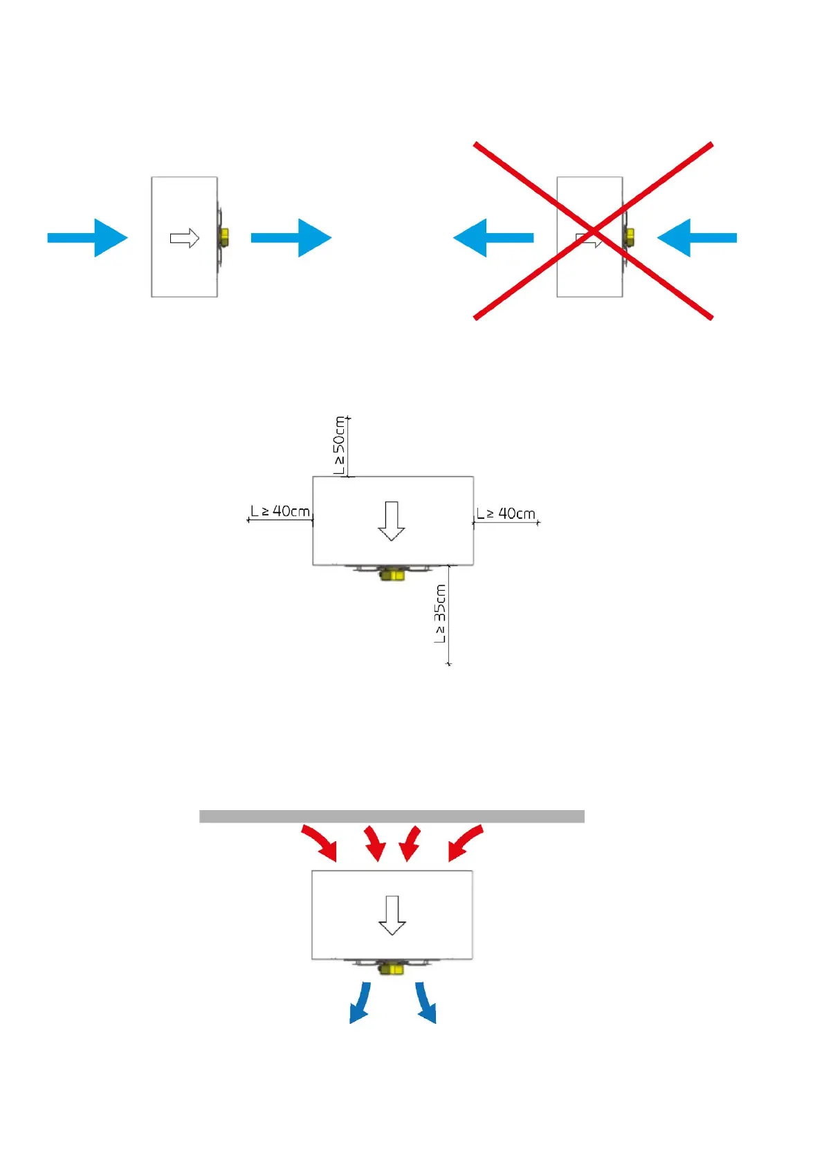 The following horizontal minimum distances to building components etc. must be observed in order to ensure optimum functioning of