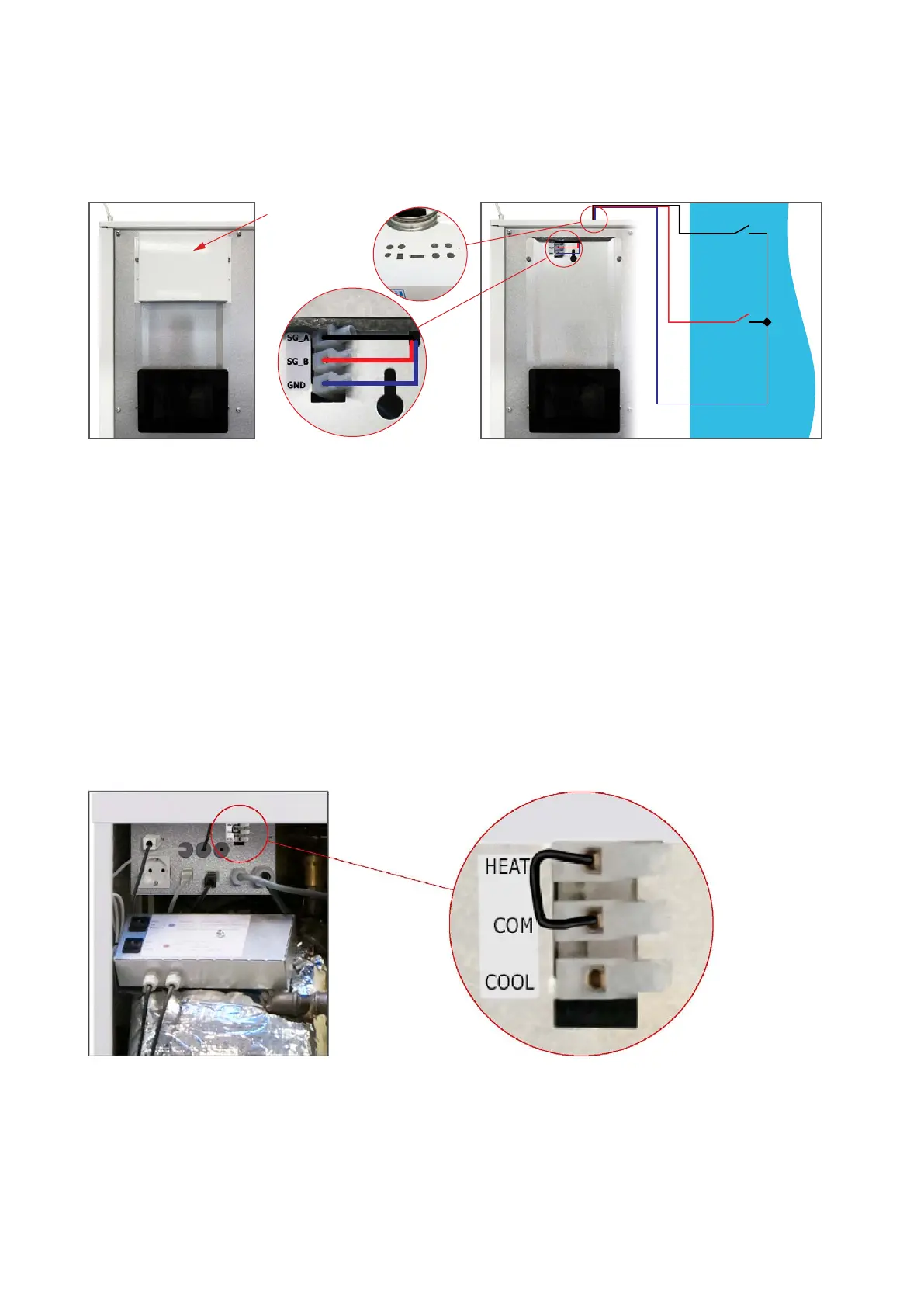 The Smart Grid signal is connected to the LC circuit board in the Compact P, which will also control AIR and GEO, if connected. Connect