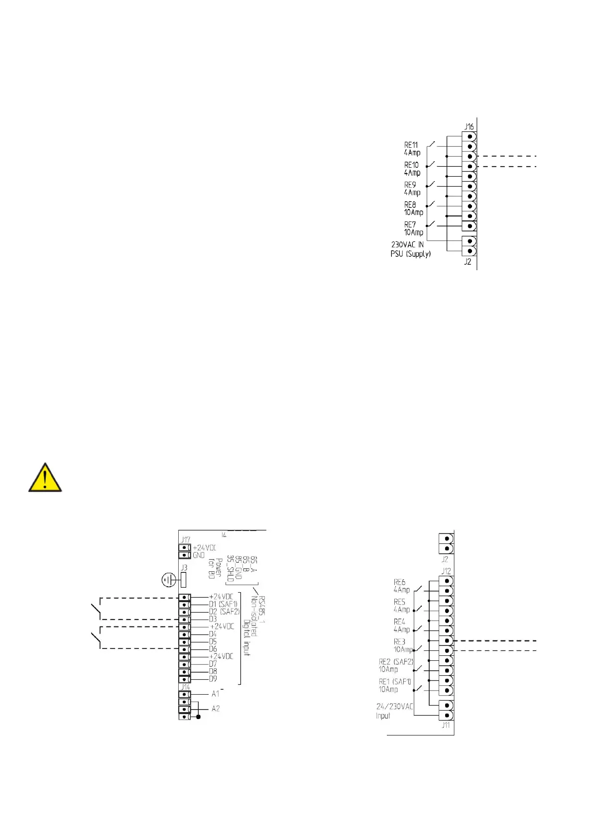 The potential free contact for the cooker hood is connected to user selection 1 or 2, which are programmed in the unit's software under
