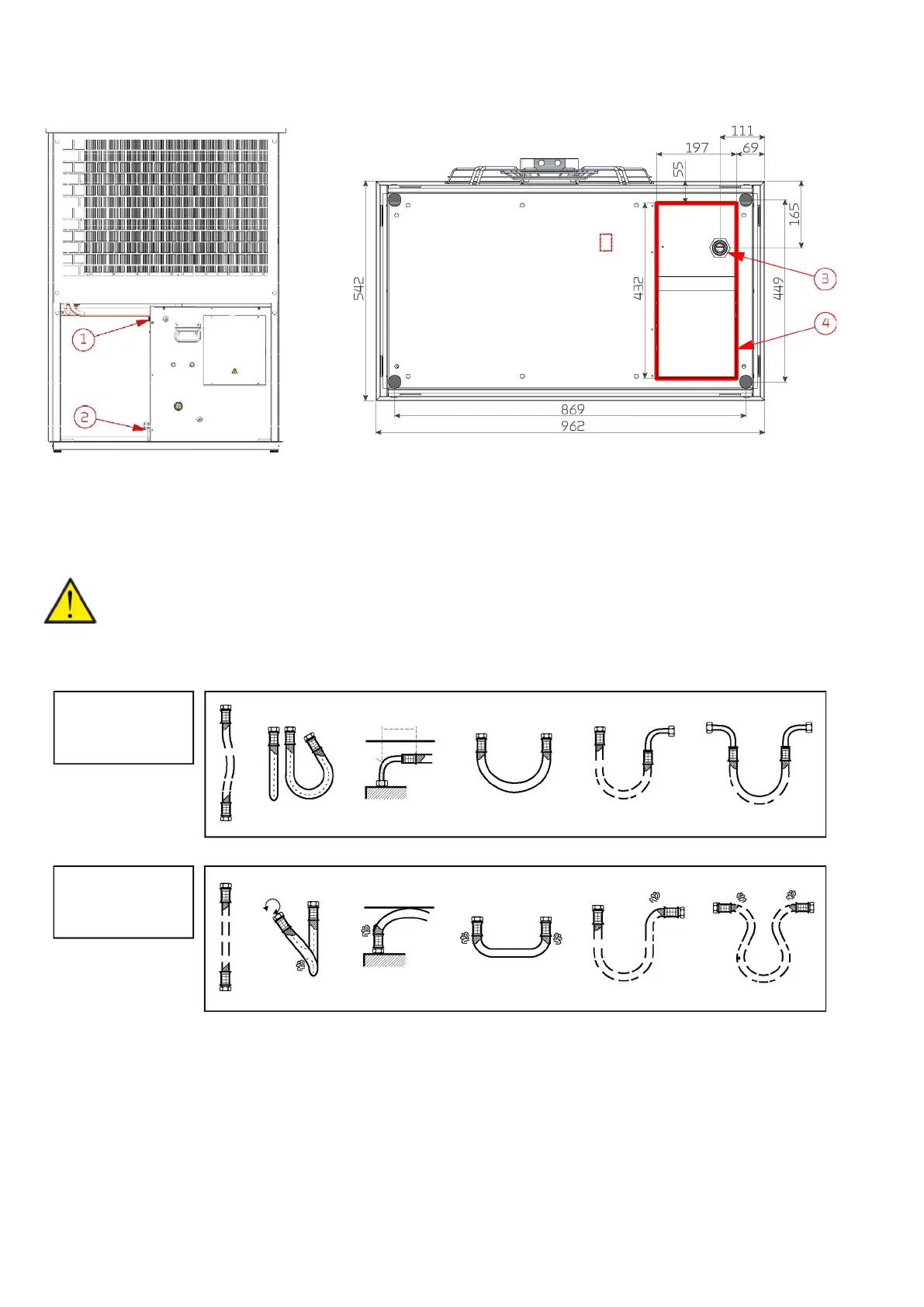 2. Return from internal unit (cold), fitted with 1" flexible hose