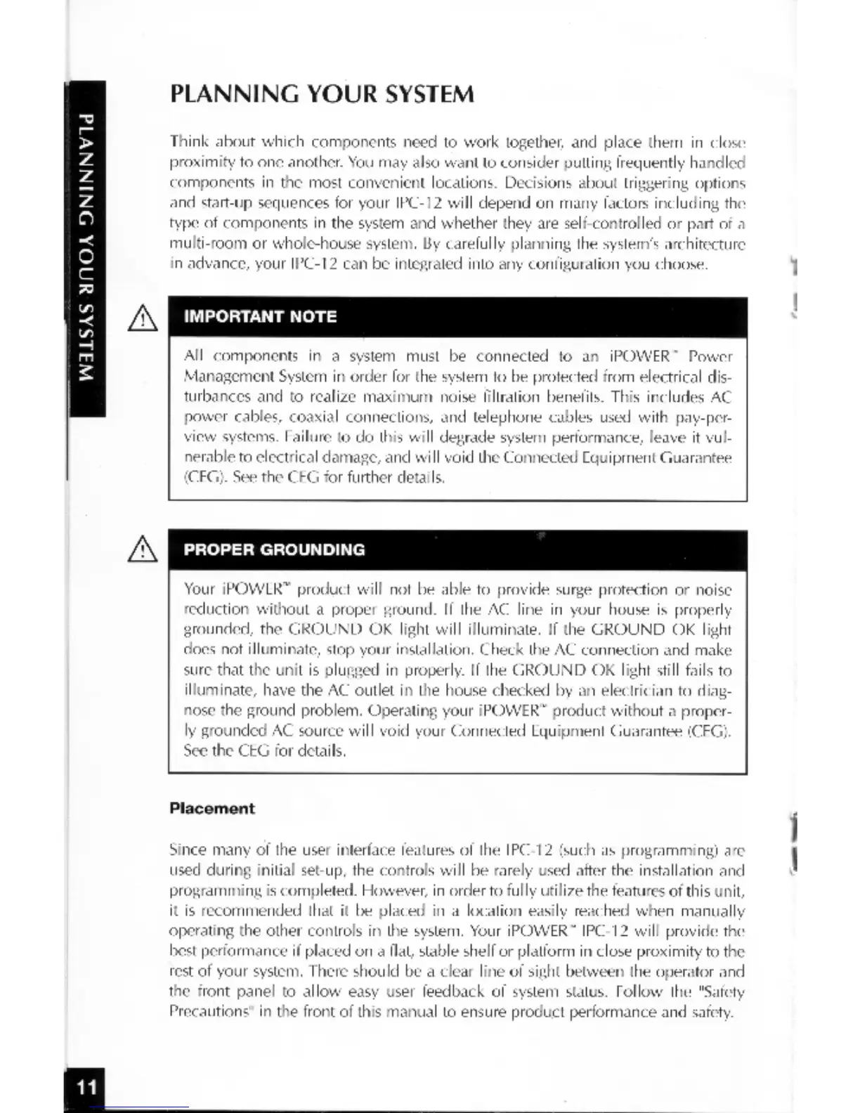 Niles iPower IPC-12 - Planning Your System; Placement; Proper Grounding