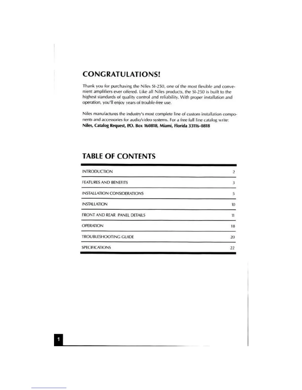 Niles SI-250 - Introduction to the Niles SI-250 Amplifier