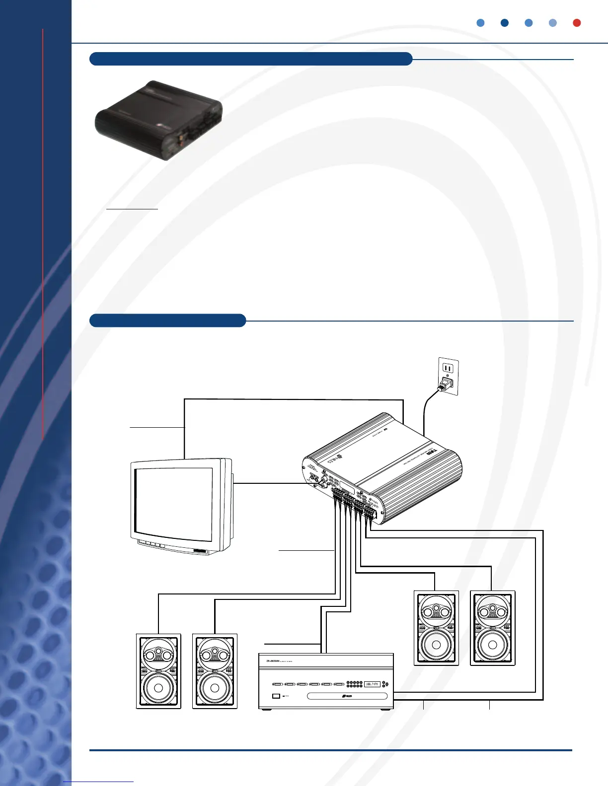 ■ Accommodates two pair of speakers via removable screwless connectors
