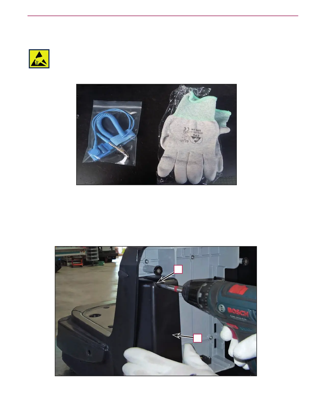 Use the specic ESD gloves. The operator should not wear a sweater, eece or