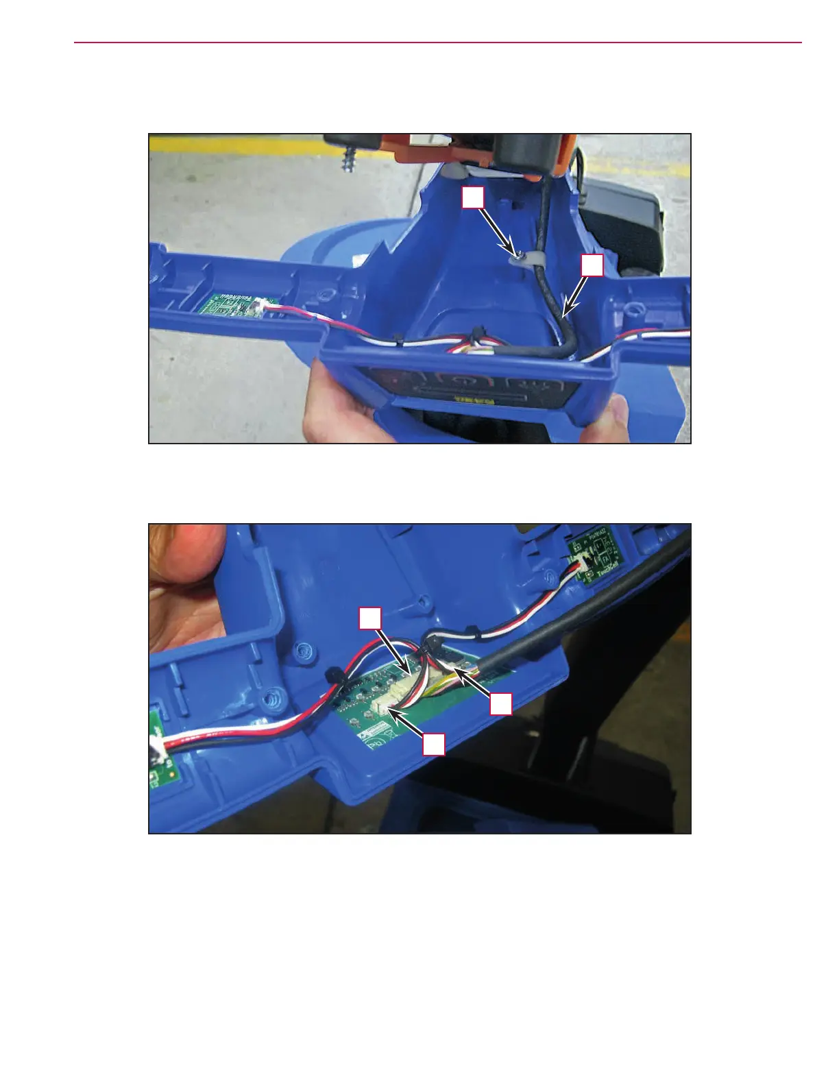 6. Disconnect the main wiring (G) and the 2 connections for the hand presence sensors (H).