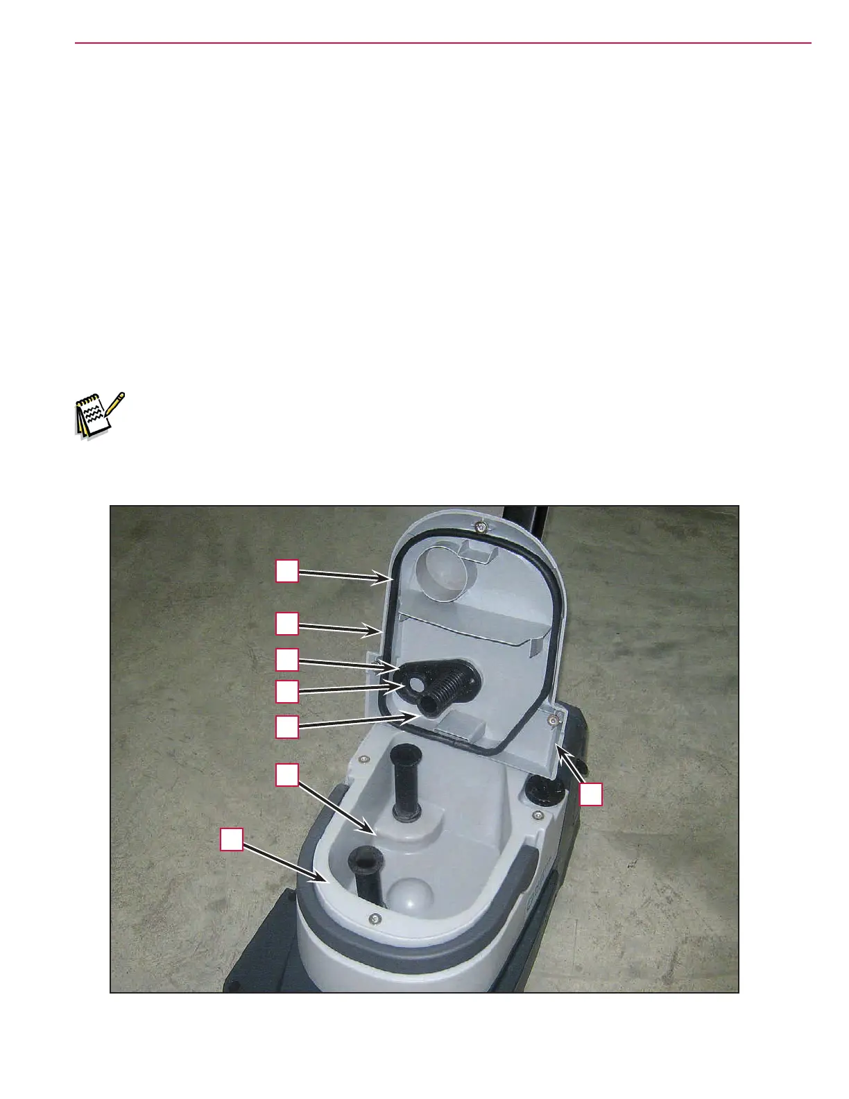 8. Clean the tank compartment (G) with water and