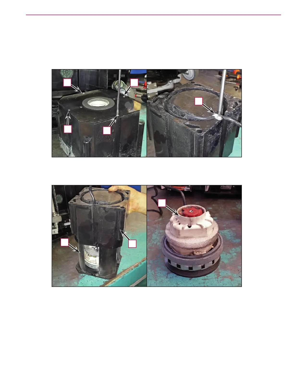 10. At the workbench, unscrew the 4 screws (H), then carefully rotate the vacuum system assembly.