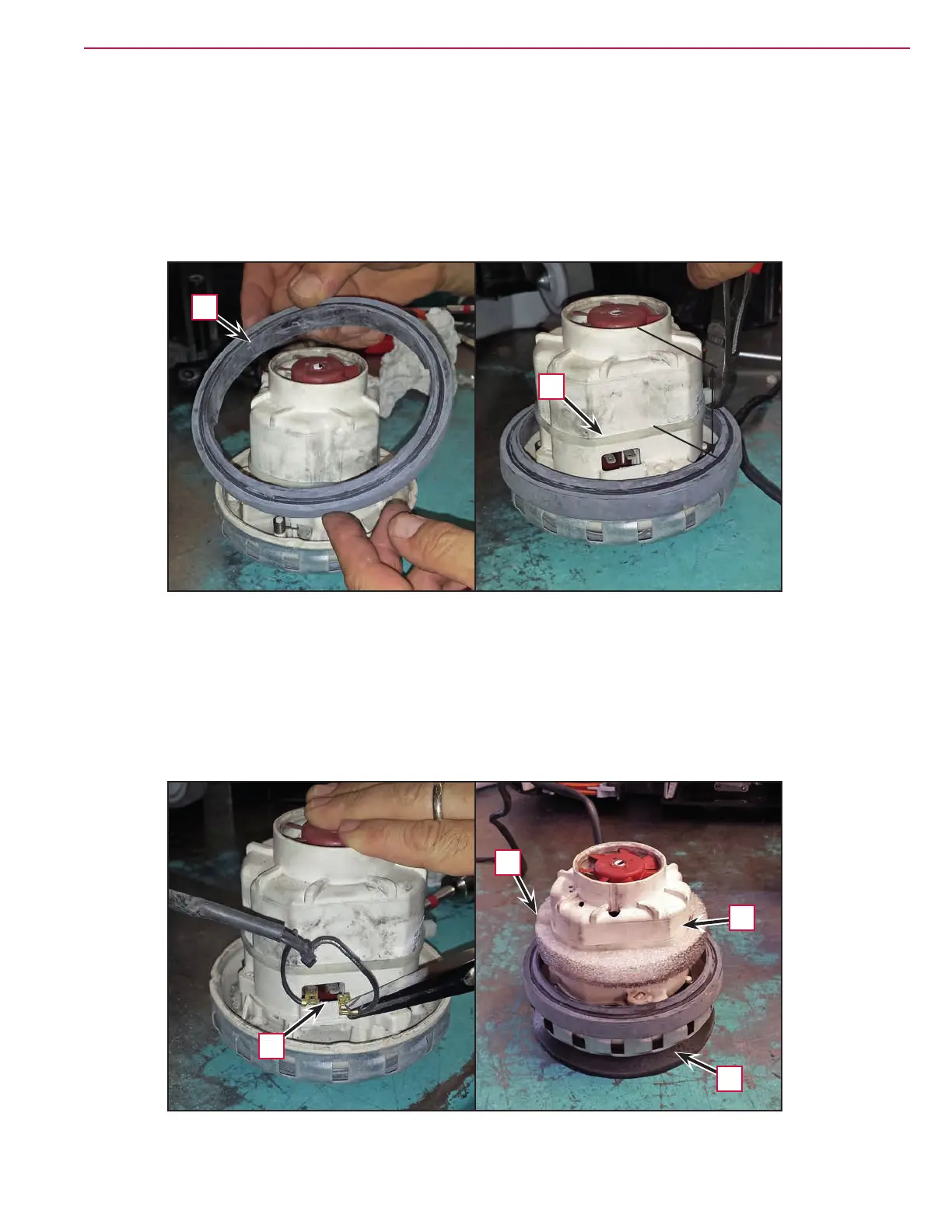 16. Position the gasket (M) on the vacuum system motor. Check that the gasket is reassembled with the