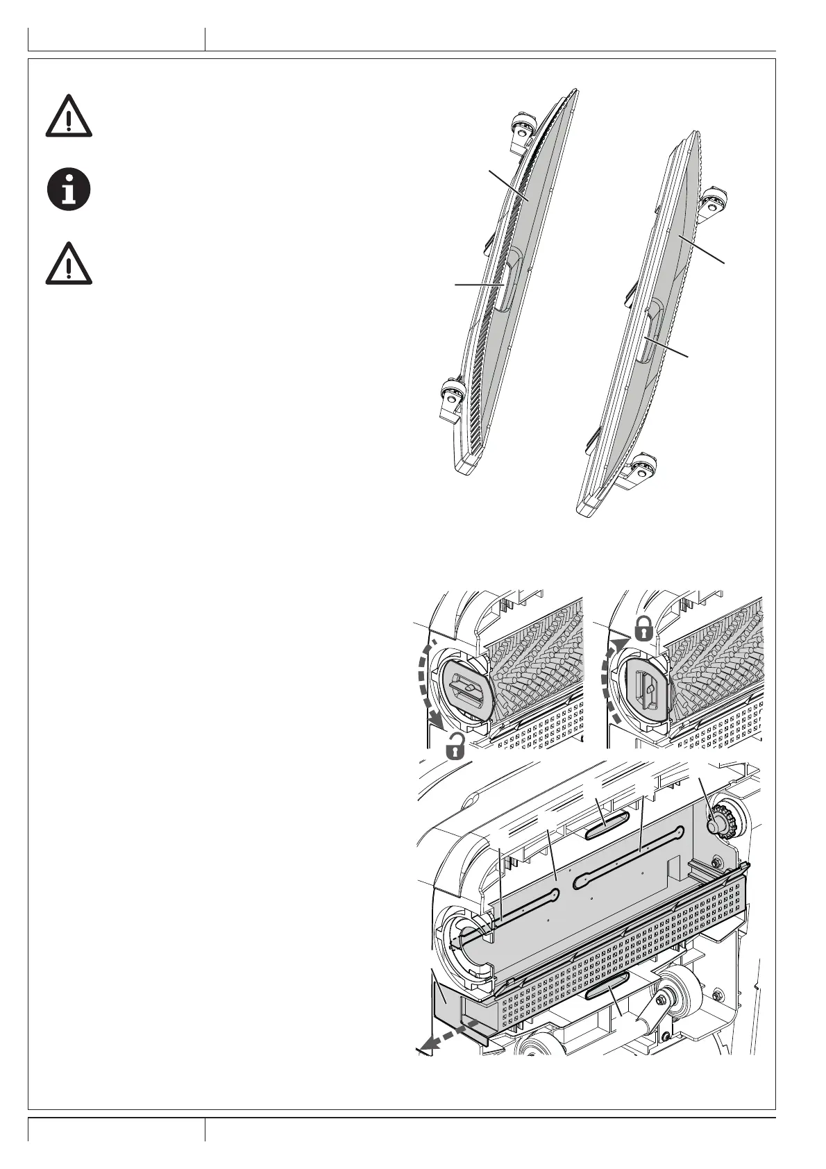 As barras limpadoras estão xas à máquina com