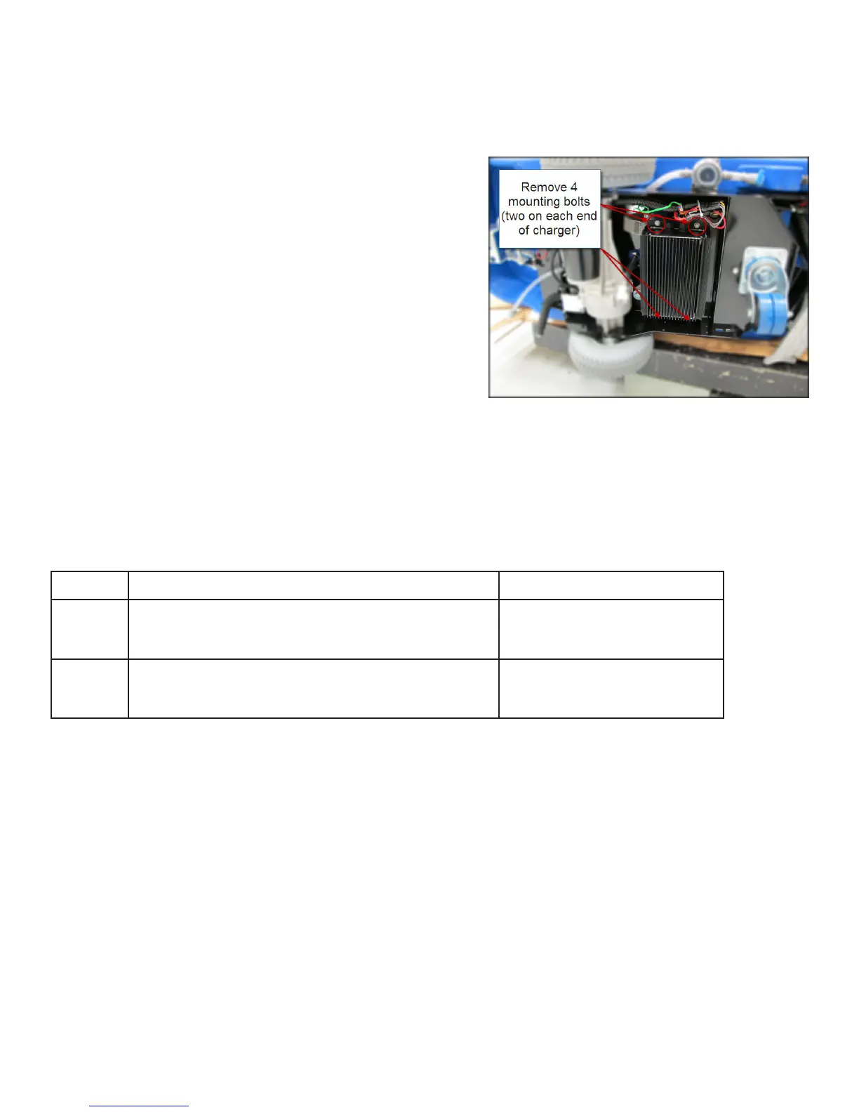 The baery charger is mounted to the boom of the frame with 4 bolts that are screwed into threaded holes.