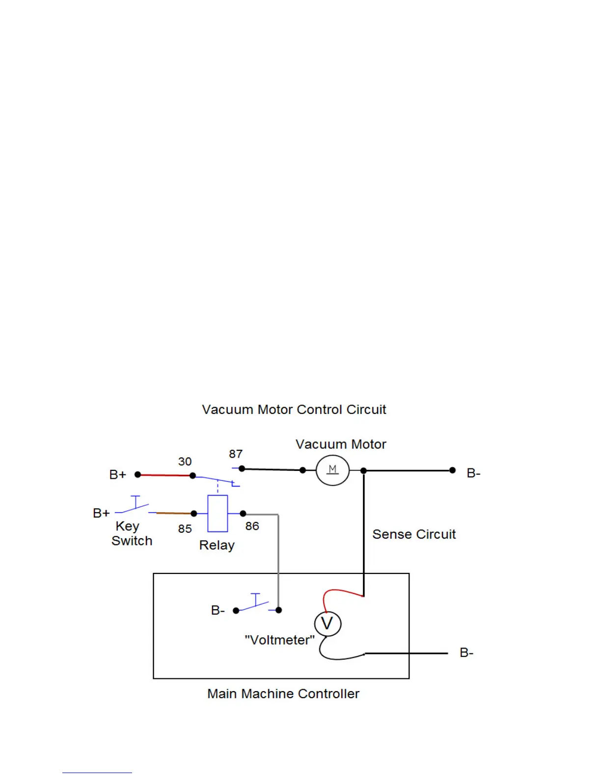 connected to baery negave, the motor turns on. The also monitors the current draw of the vacuum motor via a “vacu-