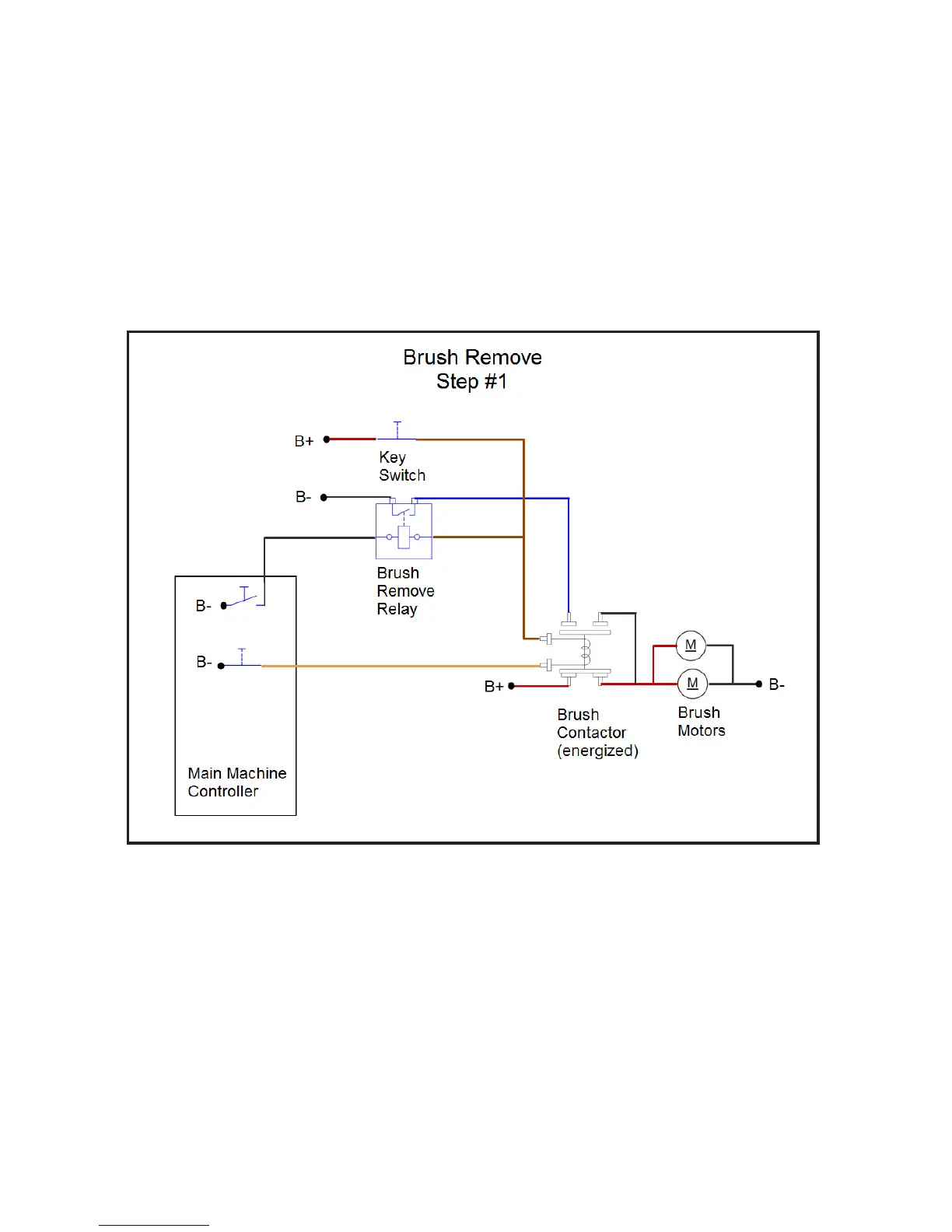 While the brushes are running, the Main Machine Controller energizes the brush remove relay. This provides a baery