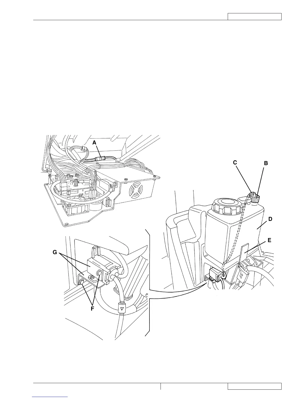 If equipped, unscrew the fi tting (B) and remove the hose (C) from the detergent tank (D); then remove the detergent tank (D)