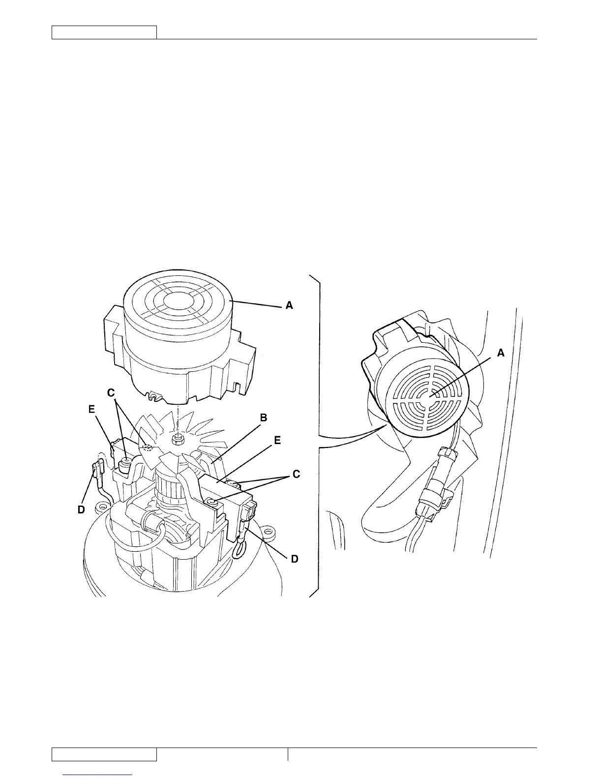 Rimuovere il coperchio (A) dal motore dell'impianto di aspirazione (B).