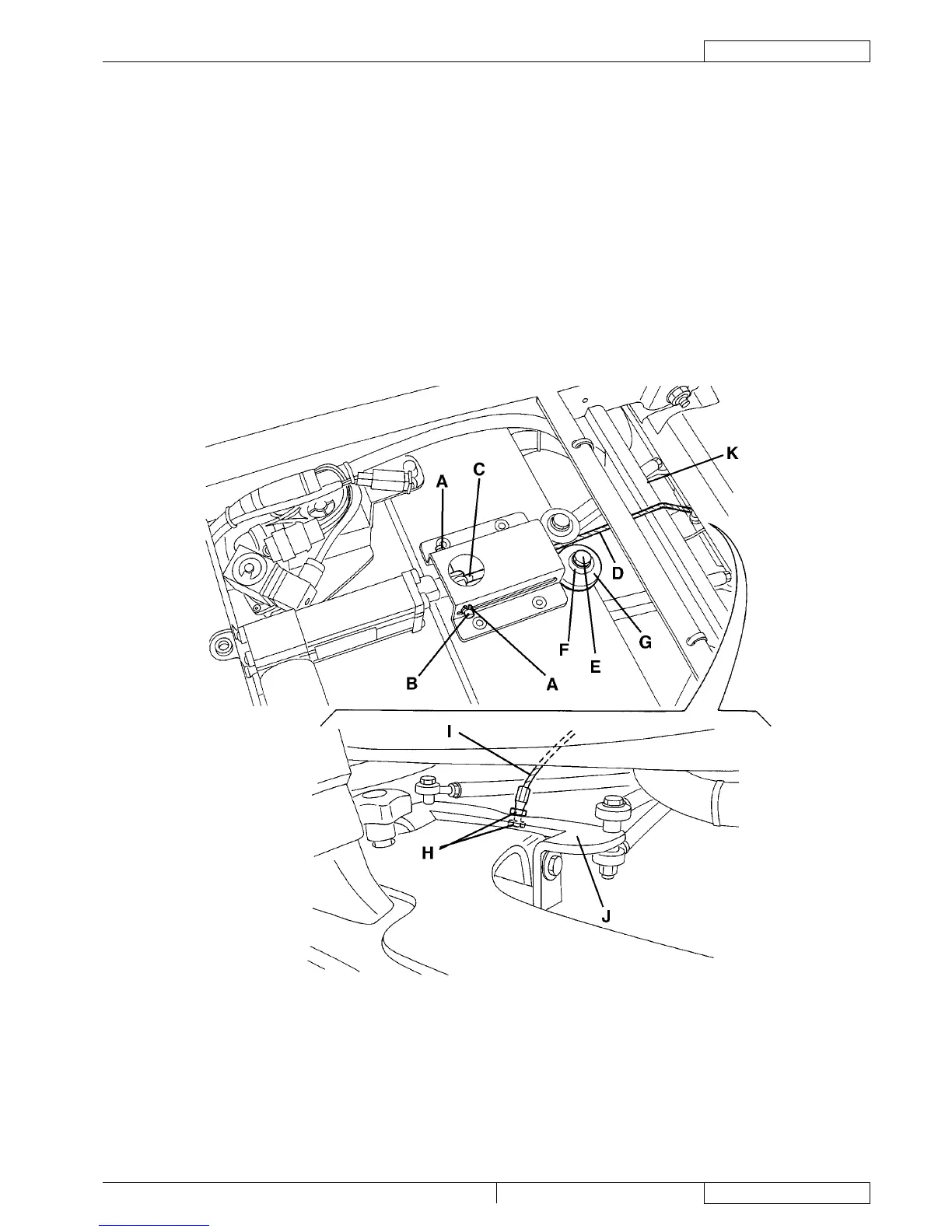 Rimuovere il dado e il controdado (H), quindi rimuovere il cavo di sollevamento (I) dal gruppo tergitore (J).