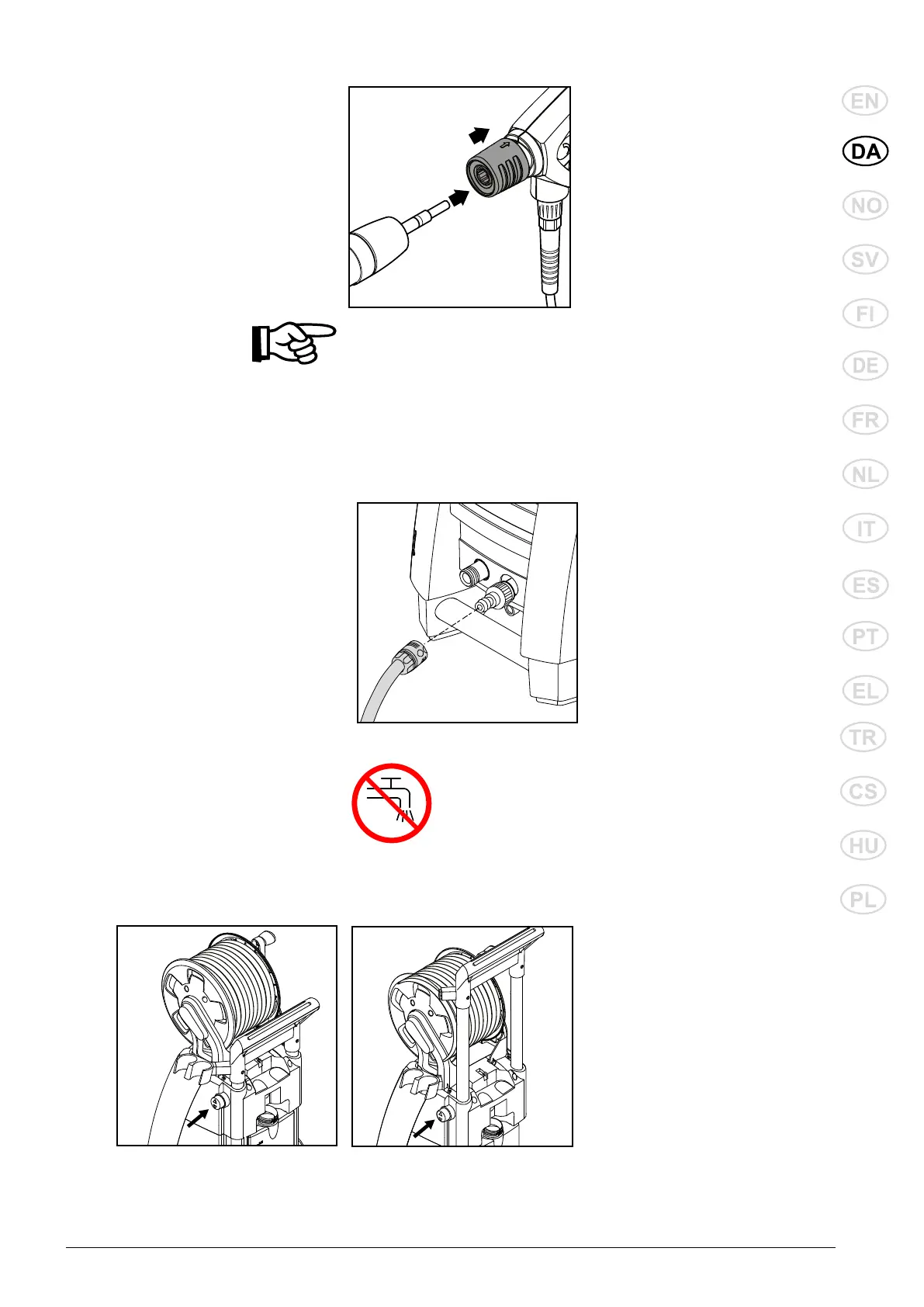 5.2 Montering af dyserør 1. Træk det blå lynkoblingsgreb
