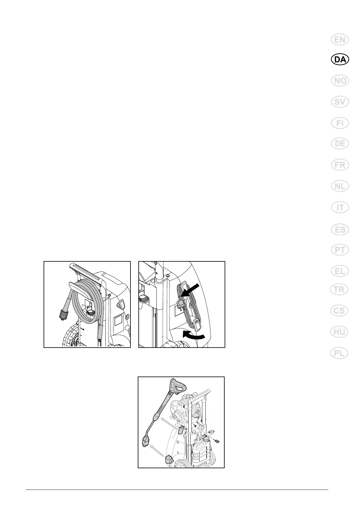 7.3 Opbevaring af tilbehør Standardtilbehøret (spulehånd-