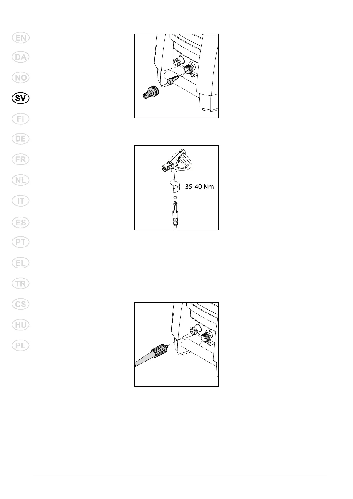 Montera fast högtrycksslangen