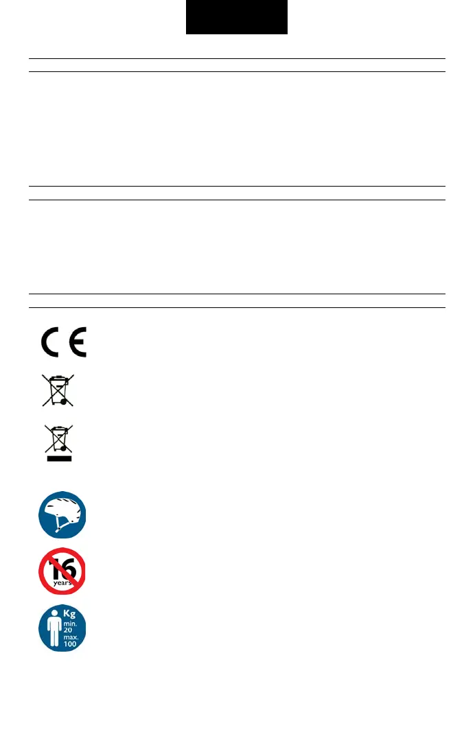 Peso minimo per l’utilizzo 20 Kg, peso massimo 100 Kg.