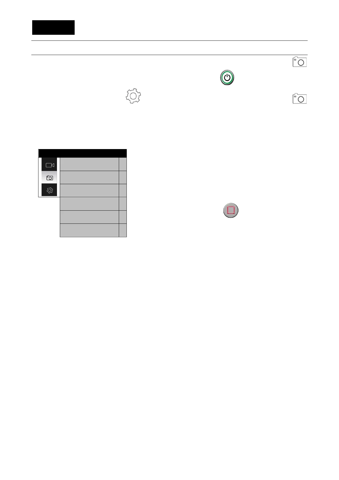 Zum Einstellen der Fotoparameter muss sich die EVO 4K30 im Fotomodus befinden; die Ikone