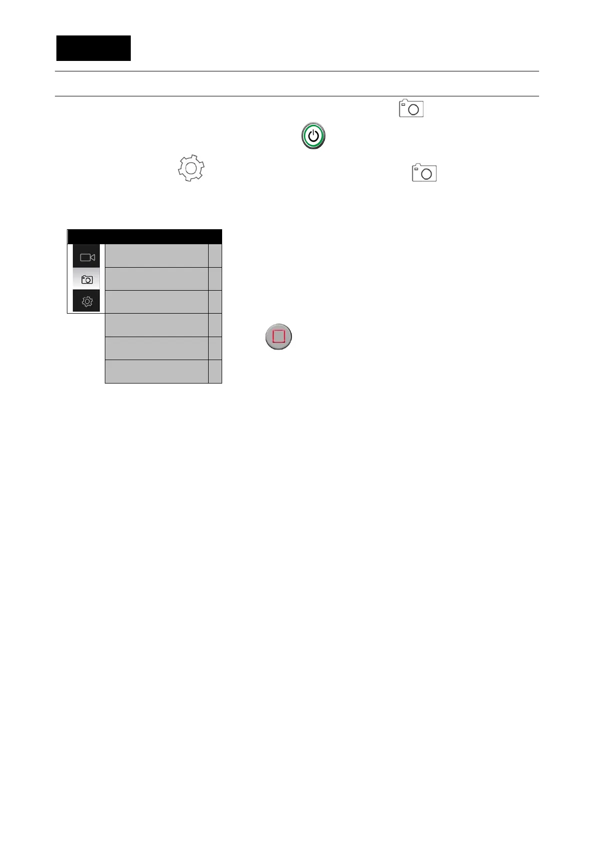 The EVO 4K30 must be in photo mode to set photo settings; an icon appears at the top left,